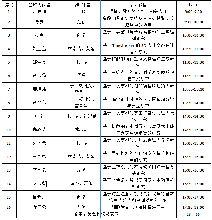 答辩委员:丁建浩(杭州电子科技大学,副教授),孔颖、雷景生、周扬、林志洁、向坚,黄杰
