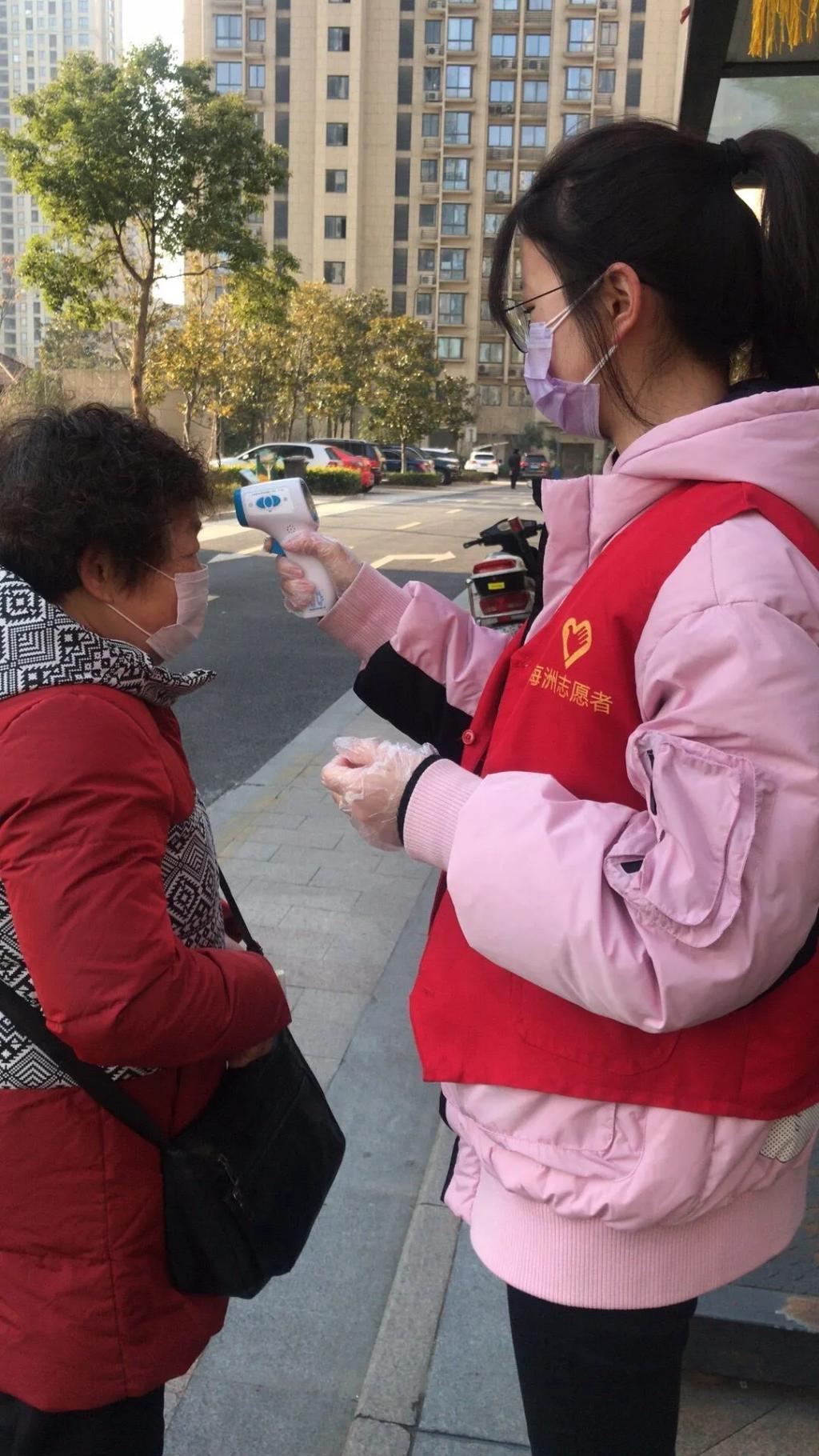 信息学院软工181沈梦婷同学,身为一名浙科学子, 看到疫情的严重与危急,积极报名参加小区防疫志愿者活动,对进出小区的人员进行体温测量,登记外访人员信息,帮小区内的住户办理小区通行证。