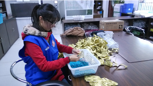 在药剂室的心理工作者都是蛮辛苦地,满满的蓝色药丸都是他们从一盒盒药里剥出来的。只有实际操作过,我们才会更懂得感恩。