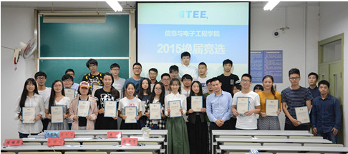 2015年9月19日晚6:00,金桂初绽,浙江科技学院信息学院学生会举办了学生会换届竞选大会暨聘书颁发仪式。本次大会的主题是传承责任,团结一心,共创蔚蓝。本着公开、公平、公正这一原则,来自不同专业,不同部门的10位参选人员带着各具特色的特长与经验,通过演讲与答辩的方式进行竞选,评委团也对各参选人员逐一点评打分,由此选出信息学院2015-2016学年主席团成员。
