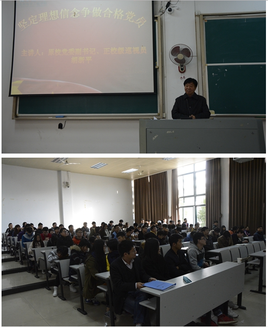 信息学院党校本学期第四次党课于11月26号下午在教室A3-121开课。本次党课由原校党委副书记、正校级巡视员——胡浙平老师为党校学员上课。信息学院党委副书记姜国泉老师主持。
