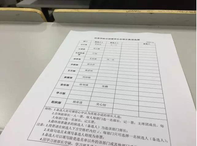 11月6日下午16点20,信息学院学生会于A2-205举行部长换届竞选。