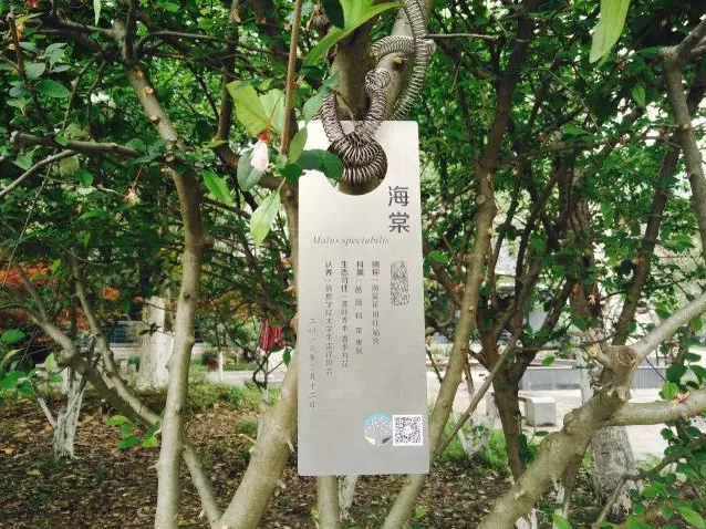 在浙江科技学院校友之家门前,大学生雷锋协会对一棵美丽的海棠树正式挂牌认养。这棵海棠树就此成为协会的一员,也成为校内学生社团认养的第一棵大树。