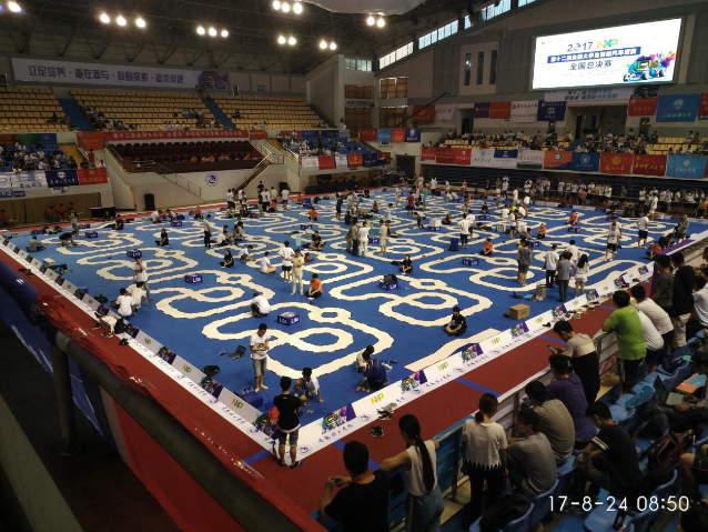 决赛赛场上进行着激烈地比赛,队员们满含希望的看着自己正在飞驰的车,裁判员也是很认真地注视着赛场情况,保持比赛的公正。