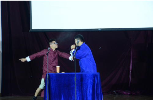 霍金和爱因斯坦虽已仙逝,但是他们的成果却影响着世人,相声演员吴浩泽、廖新培就迫不及待的向大家展示他们的研究成果《量子力学与广义相对论在相声的表演与创作中的指导及应用》。