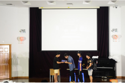 接下来是何敏杰、陆凯杭、吴泽浩、李比乐队带来的歌曲串烧,各个歌曲的完美融合迎来了同学们热烈的掌声。