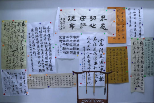 梁弄是浙江省首个获得“中华诗词之乡”美誉的乡镇,因此村里诗词书画爱好者,平常经常聚在一起进行写诗作画,特别是收到总书记回信后,许多党员、组织团体在学习完习近平总书记回信中的精神后,都积极把自己的学习心得写下来,留在这个书画室。讲解员还告诉我们,如果我们写得不错也会被横坎头村永久珍藏。