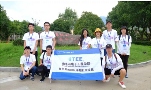 7月28日早上8:30,浙科院烈日灼灼,万里无云,信息学院红色起航实践团队在校门口校训碑石前集合就绪,准备踏上暑期社会实践的征途。