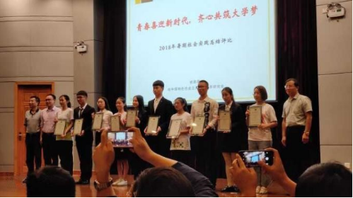 在所有的团队展示完毕后,主持人宣布评比结果,恭喜信息学院红色起航社会实践团队以总成绩第六的成绩获评浙江科技学院2018大学生“双百双进”集中性活动暨暑期社会实践十佳团队。