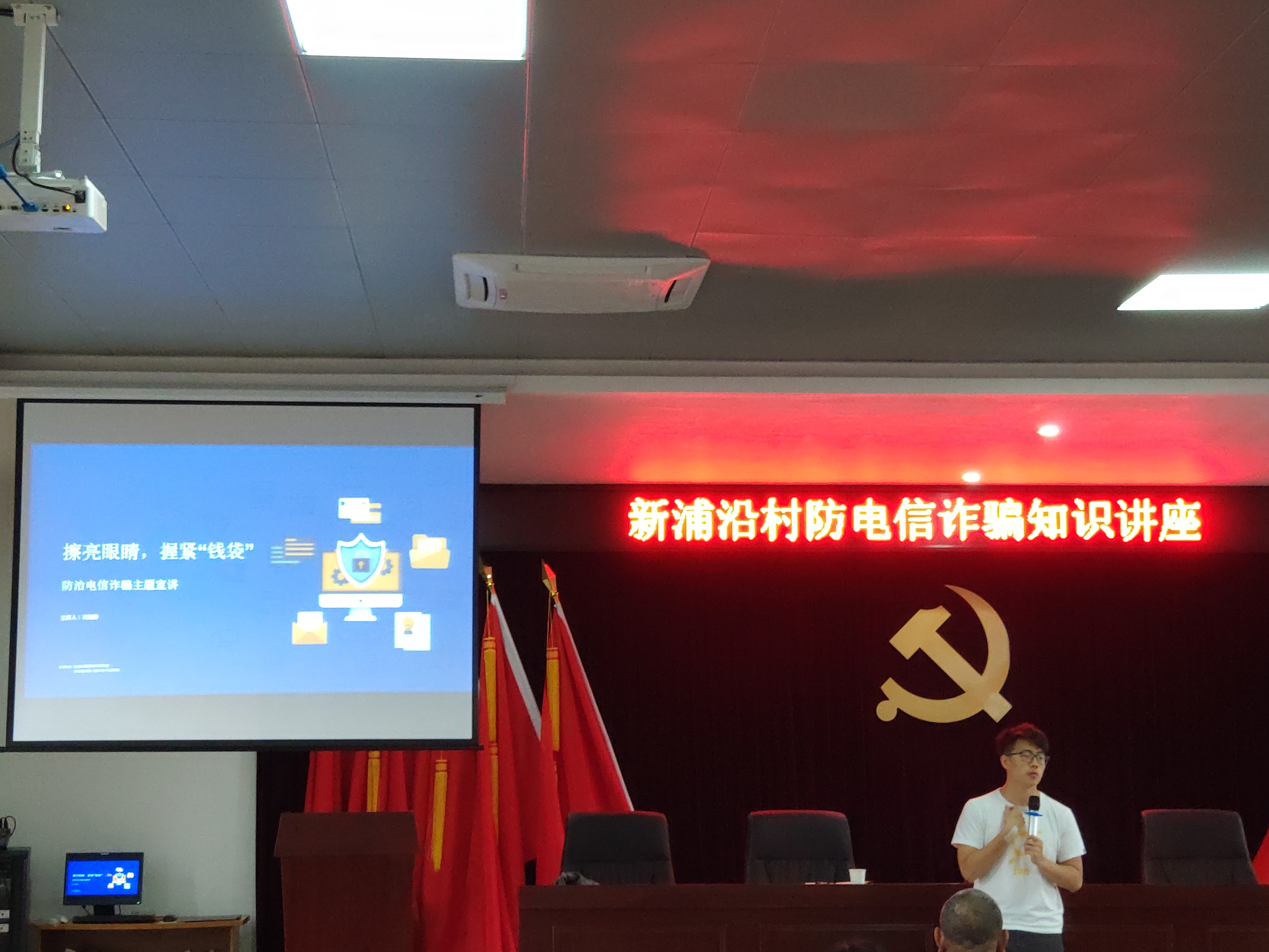 2019年5月15日,信息学院志愿者协会的两名志愿者前往新浦沿村,为当地社区居民作“防电信诈骗”主题宣讲。此次活动的参加者大都是上了年纪的叔叔阿姨们。