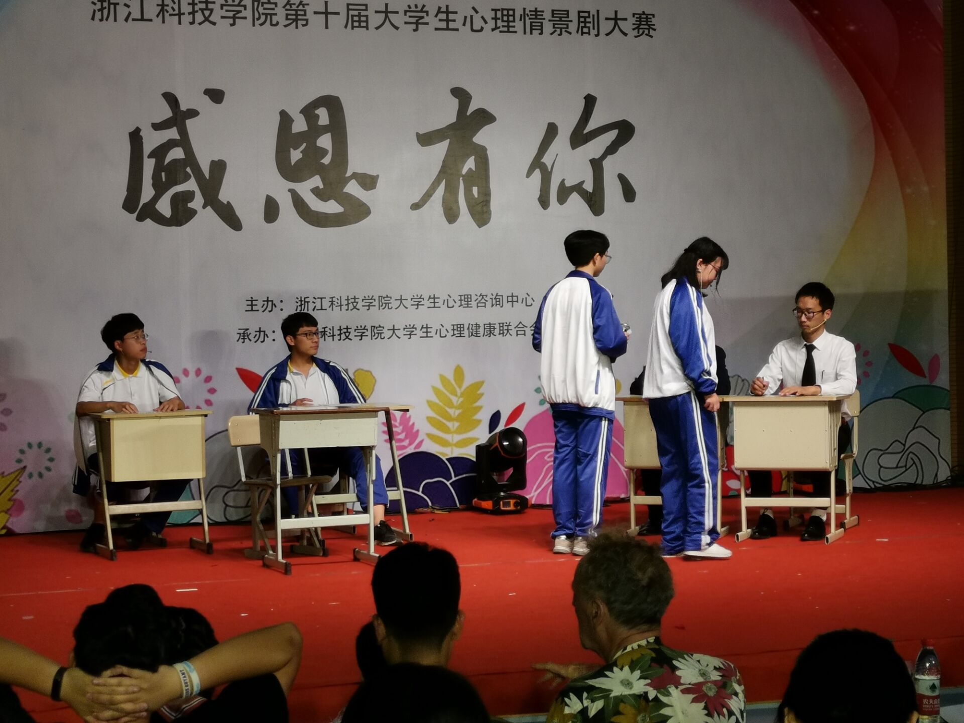 5月25日下午,浙江科技学院第十届校园心理情景剧大赛于A4-122举行。大赛由浙江科技学院大学生心理咨询中心主办,来自11个学院的队伍参赛。信息学院代表队演出的《感恩有你》讲述的是一名优秀的游戏设计师—江小鱼的成长历程,获得了评委的高度评价和观众的热烈掌声。