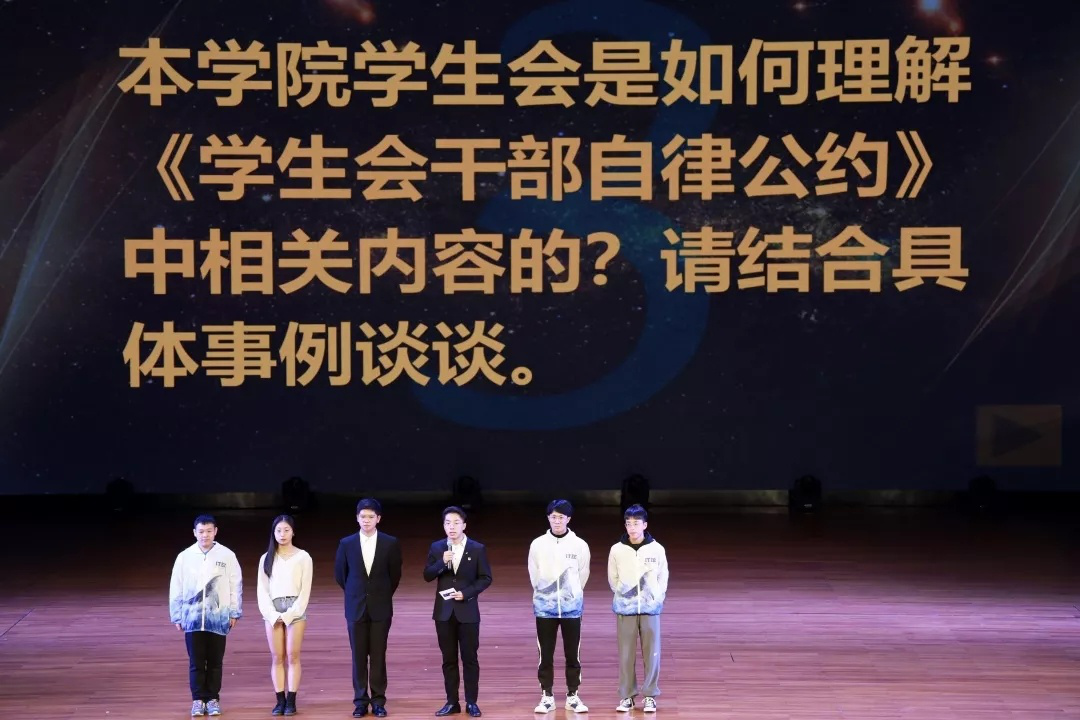 2019年11月22日,浙江科技学院第六届二级学院学生会评选活动在水晶剧院举行。开云官方版网站登录入口由学生会主席黄铿达和智能机器人“小胖”来汇报2019年的工作成果。在现场展示中,开云官方版网站登录入口学生会秉承“从学生中来,到学生中去,全心全意为同学服务”的宗旨,以蓝色文化为主题,从“内基、外拓、成长、精品”这四个方面阐述一年来工作所取得的成绩,受到评委一致好评,并以总分第一名的好成绩荣获“2019年度浙江科技学院优秀学生会”称号。