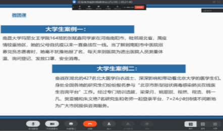 数媒181团支部、数媒体183团支部则通过线上实时交流,做好疫情下的心理防控,保证同学们的心理健康,坚定打赢疫情阻击战的信心。