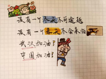 新冠肺炎疫情发生以来,全国上下众志成城,齐心协力共克疫情。各个团支部中的团员结合自身特点、发挥专业优势和个人特长、积极创作富含正能量、凝聚人心的文化作品。5个加油视频、70多条手写祝福为抗战在一线的战士们传递信心,希望疫情能够快速退散,让我们重新回到和谐幸福平安的环境之中。
