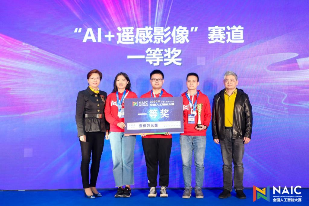 近日,第二届全国人工智能大赛在深圳鹏城实验室举行了颁奖典礼。经过历时近4个月的激烈角逐,信息学院2020届软件工程专业校友陈喆(目前南京大学计算机科学与技术系研一在读)负责的“Amadeus”团队以领先优势夺得AI+遥感影像赛道的冠军,获得100万人民币的奖金。中国工程院院士于全和星河控股集团副董事长姚惠琼为冠军团队颁奖。