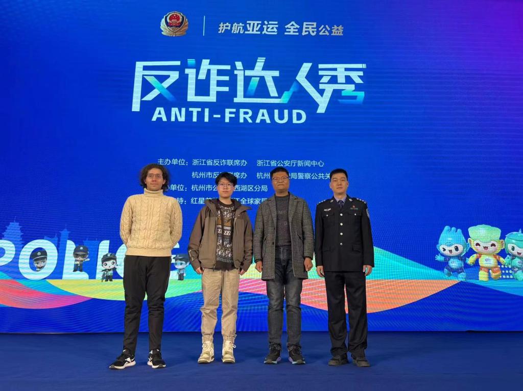 3月29日,由省反诈联席办、省公安厅新闻中心、杭州市反诈联席办、杭州市公安局警察公共关系处联合主办的“平安亚运 全民反诈——反诈达人秀(杭州)”公益活动在杭举办。开云官方版网站登录入口2022年度浙江省大学生多媒体省级A类竞赛获奖作品《反诈无国界》(指导老师:宋蔚,陈婧赟),《黎明曙光》(指导老师:唐伟,陈婧赟)主创学生代表——数字媒体技术专业的中外学生董一孝、Daniel (巴拿马)受邀参加现场访谈、展示,受到了与会人员的认可和鼓励。