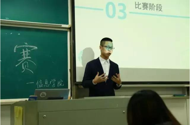 信息学院的精英杯选拔赛于11月27号晚上7点在A1-413举办。参赛选手们围绕“-在左,_在右”各取主题,展开了精彩的演讲。