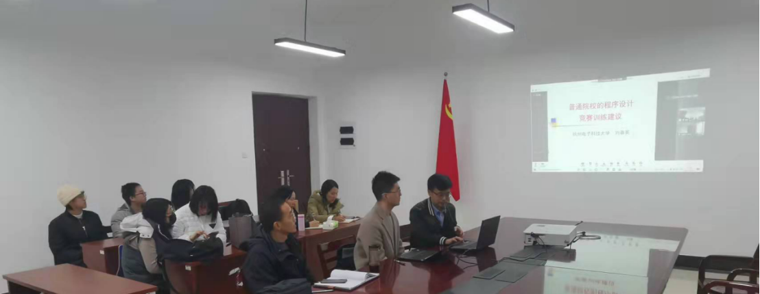 2021年12月13日,信息学院邀请杭州电子科技大学ACM程序设计集训队总教练刘春英教授做《普通院校的程序设计竞赛训练的建议》专题报告,我校程序设计竞赛指导教师及部分学生代表参加了交流研讨。